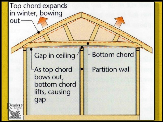 结构出了问题还是装修出了问题?这是一个只有两年新的独立屋。整体装修十分豪华,不过二层几个卧室的天花板上的molding顶角线都出现了密封胶开裂的现象。 买家是一对年轻的夫妇,女主人对这个密封胶开裂的现象一直惴惴不安,担心是结构上出了问题。因为不是某一个房间的顶角线出了问题,而是几乎所有卧室顶角线都有密封胶裂开的现象。 我提醒女主人,你是否发现这些裂缝全部都出现在2层居中的内墙(隔断墙)的顶角线上,而同样位于二层、但居于周边的外墙天花板顶角线molding都没有出现这种情况?女主人立刻又巡视了一遍,觉得十分惊奇,连连问我这是什么原因。